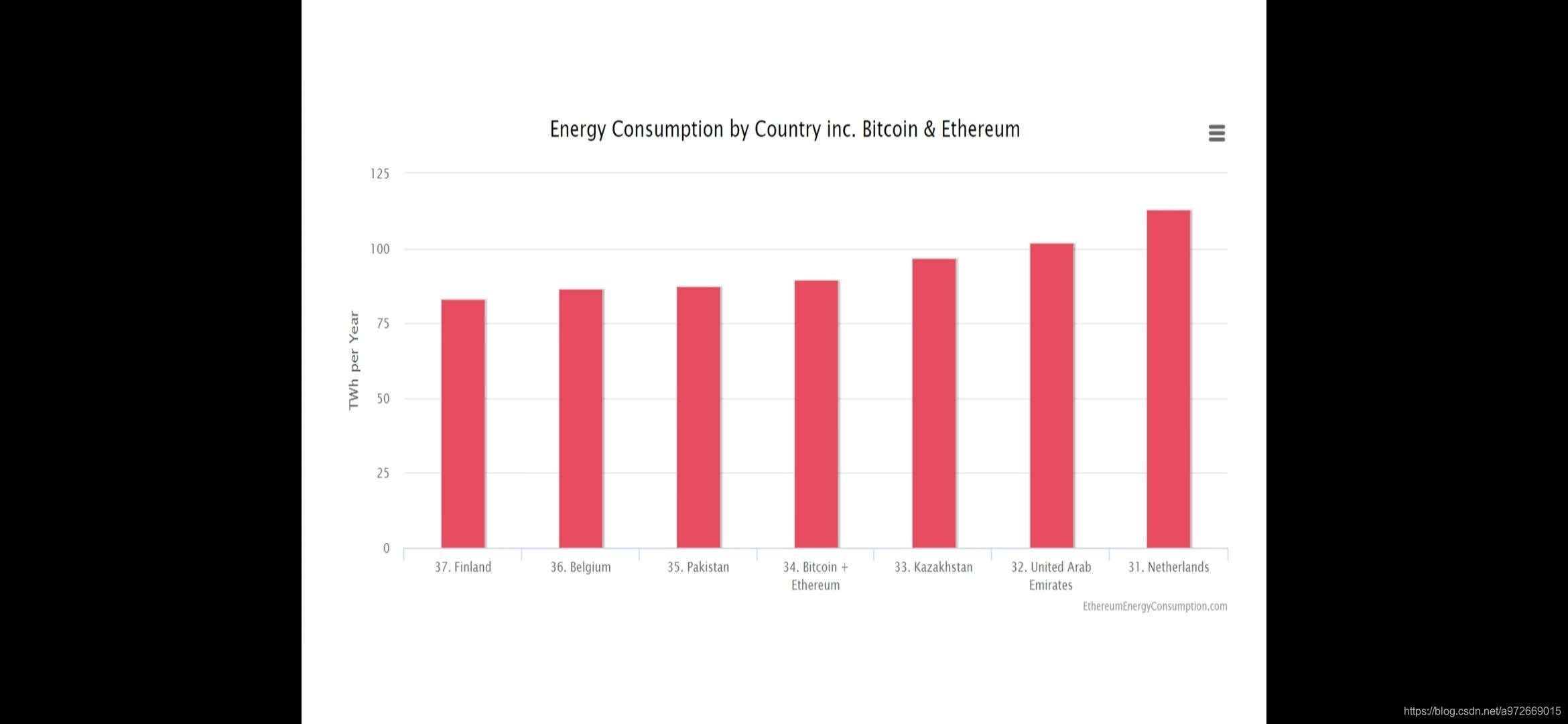 把比特币和以太坊的能耗加在一起当做一个国家来算:芬兰,比利时,巴基斯坦,比特币+以太坊,哈沙克斯坦,阿联酋,荷兰