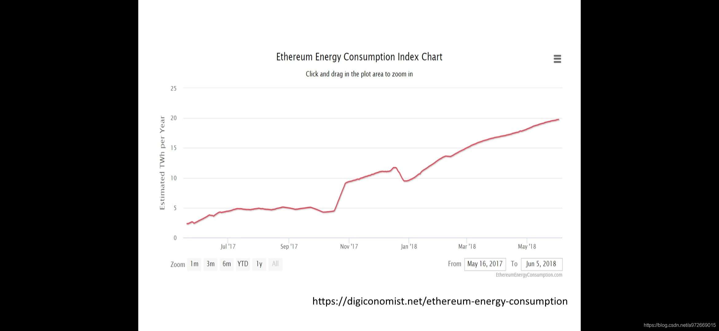 以太坊能耗随时间变化的情况:也是随时间增长