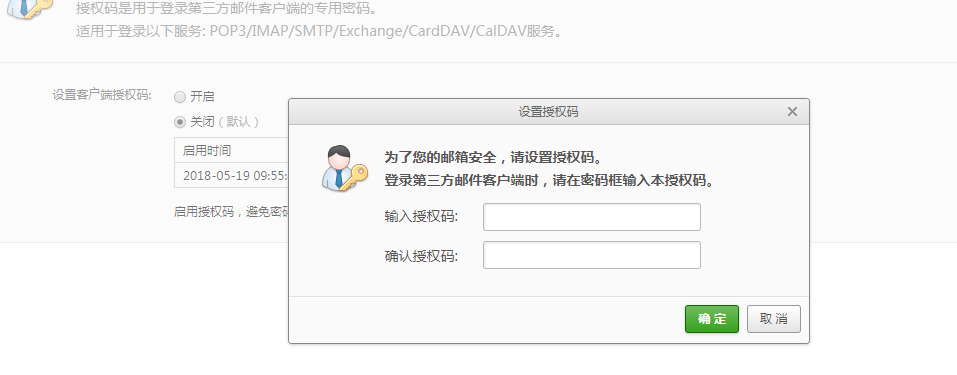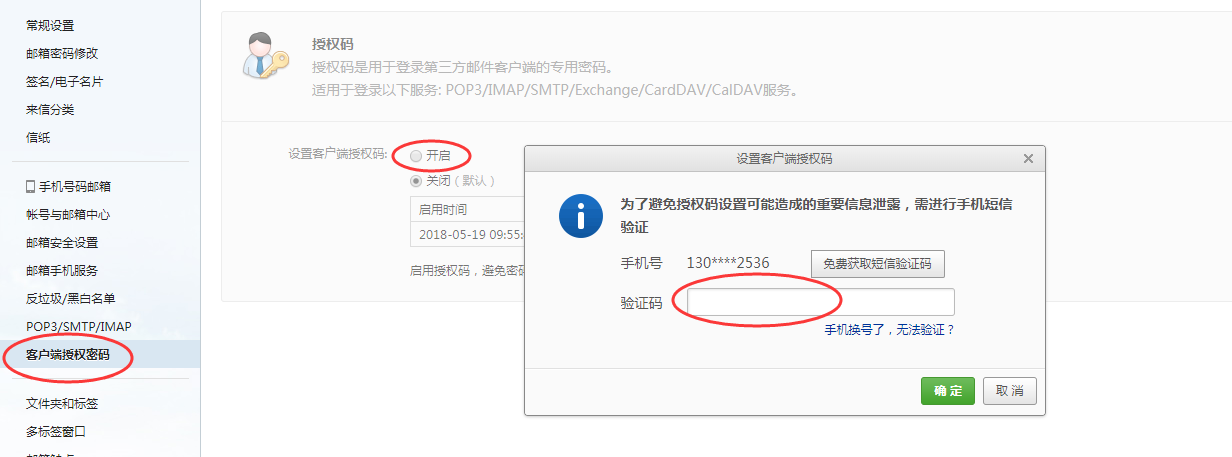 设置开启授权码,获取验证码,然后设置授权码即可