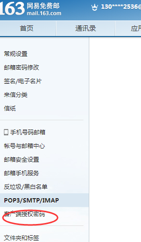 点击POP3/SMTP/IMAP,进入一个新页面,在页面左侧,点击客户端授权码