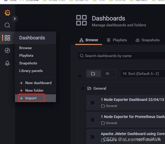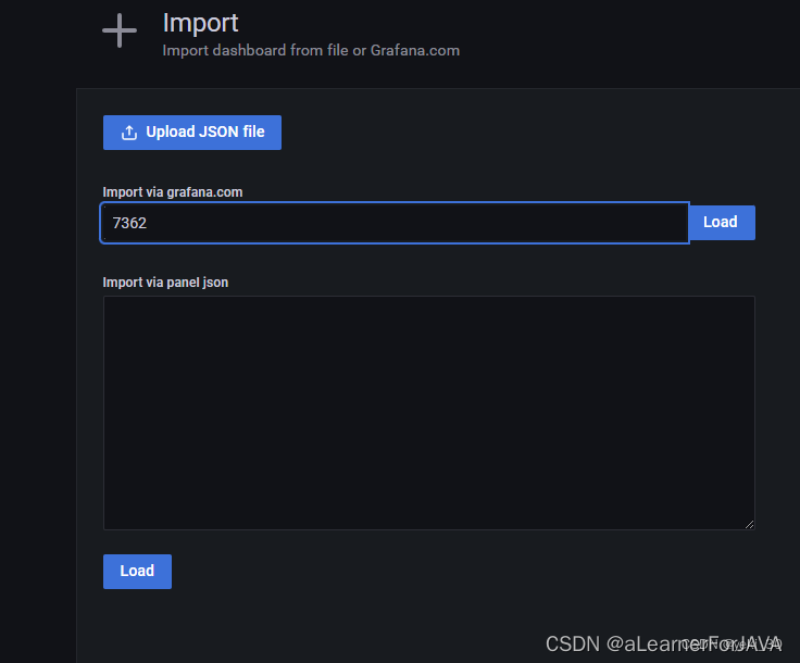 4.1 登录Grafana,在左侧菜单中选择“+” -> “Import”。