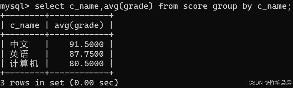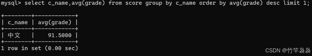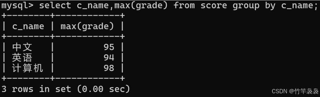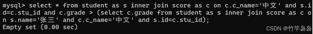注意:表里没有学生语文成绩大于张三的语文成绩,所以查询结果为空。