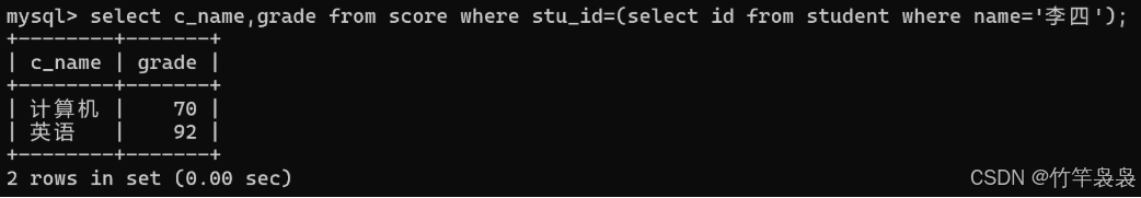 insert into `score`(`id`,`stu_id`,`c_name`,`grade`) values (2,1,'英语',80);
