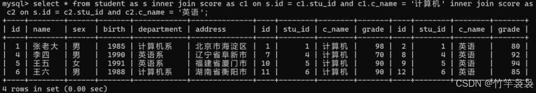 inner join score as c2 on s.id = c2.stu_id and c2.c_name = '英语';