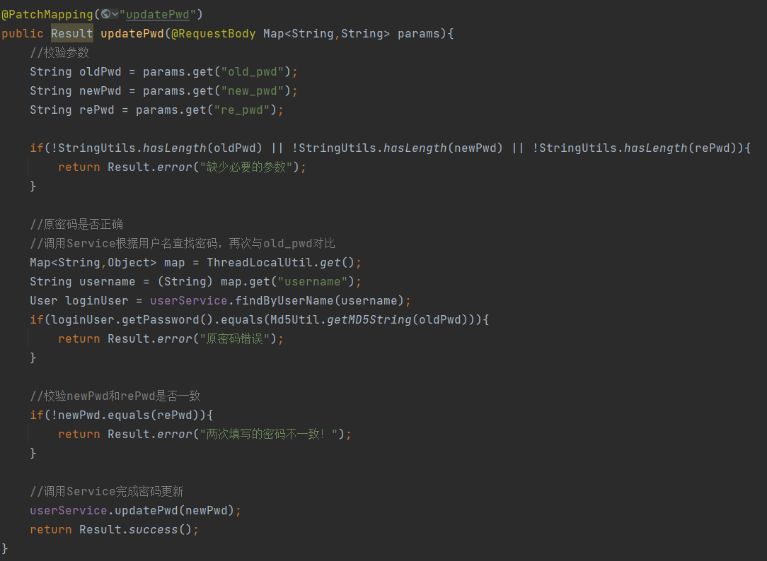 userMapper.updatePwd(Md5Util.getMD5String(newPwd),id);