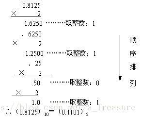 然后把取出的整数部分按顺序排列起来,先取的整数作为二进制小数的高位有效位,后取的整数作为低位有效位。