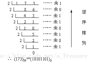 十进制整数转换为二进制整数采用"除2取余,逆序排列"法。具体做法是:用2去除十进制整数,可以得到一个商和余数;再用2去除商,又会得到一个商和余数,如此进行,直到商为零时为止,然后把先得到的余数作为二进制数的低位有效位,后得到的余数作为二进制数的高位有效位,依次排列起来。
