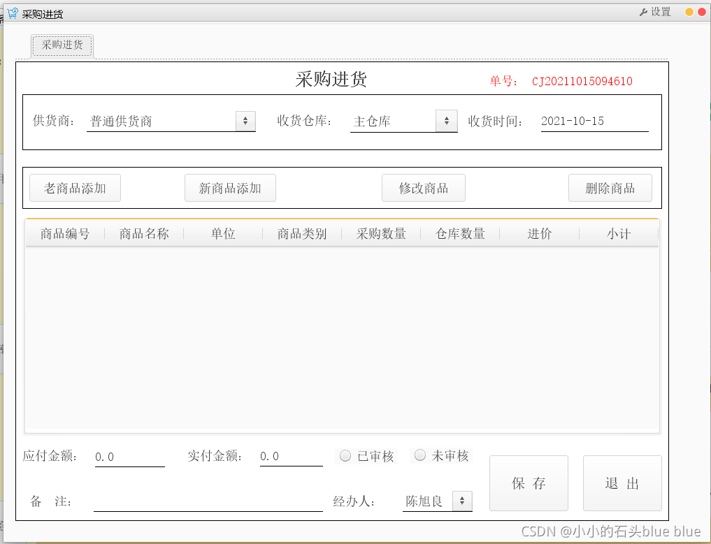 现在大家看到的是进货管理模块 :