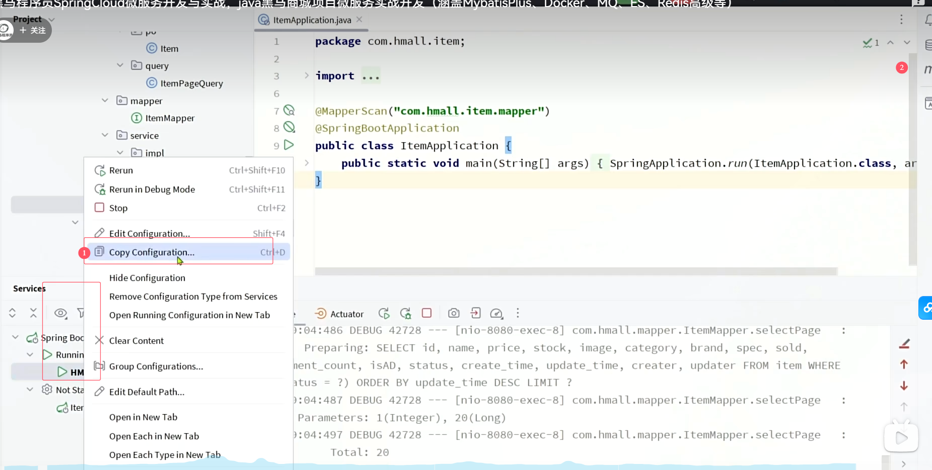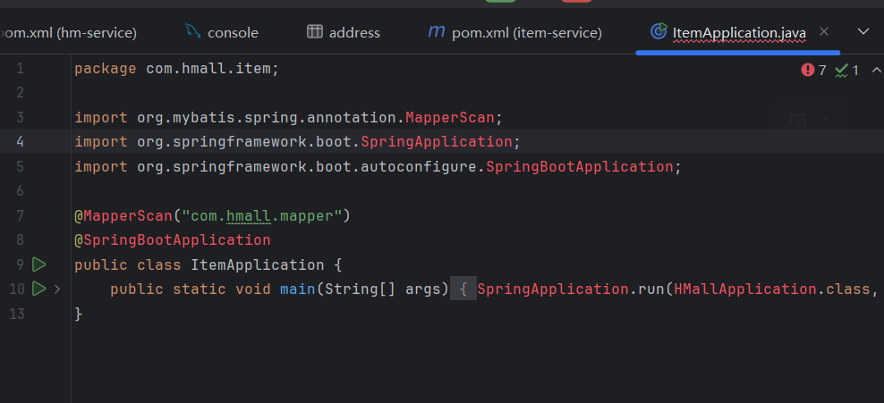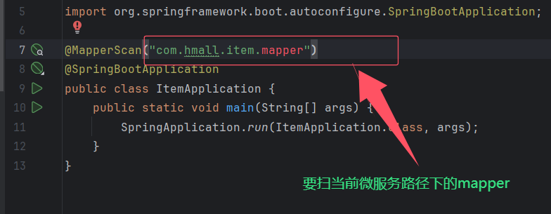 这里copy启动类需要加载maven 除此之外这里mapperscan扫的是hmall的