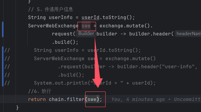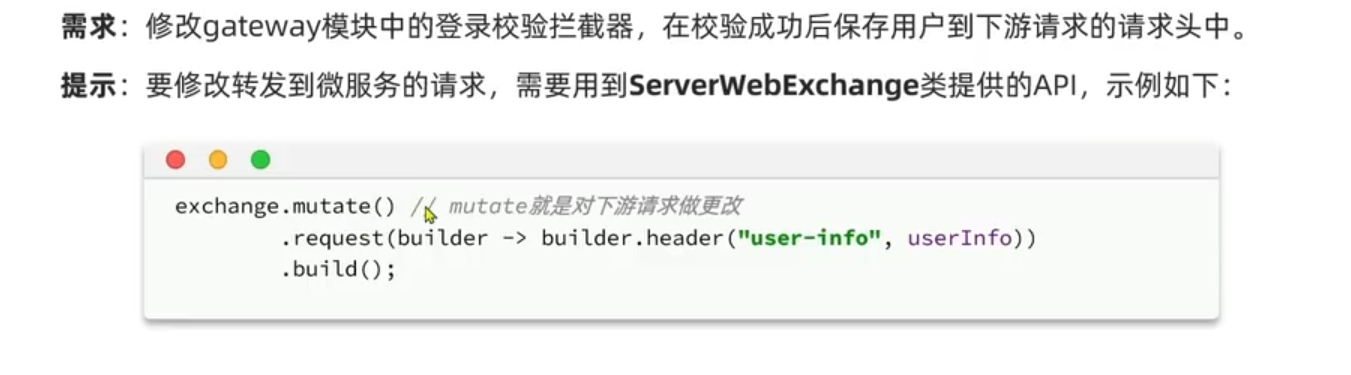 还需要传递给微服务去判断userid和鉴权 用这个mutate更改发给微服务的远程调用的请求头