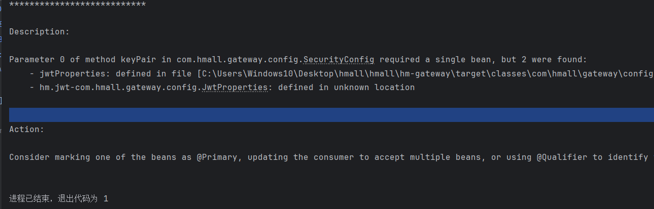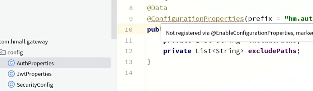 看明白了 黑马教的是jwtproperties本身不注册 在security隐式注册 但是我在那上面加了个component 导致重复注册