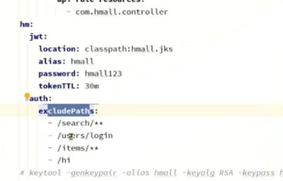 13.登录校验是在yml这么配的 对应的jwtproperties代码里写了 似乎是加载yml的属性类 excludepath 是不需要登录校验也能访问的路径