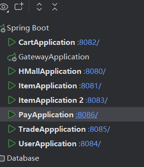 6.发生了网关的转发调用到了items 微服务 item是一个微服务 因为他只有一个启动类和一个服务配置 也就是说一个微服务可以接受两种及以上controller能收到的前缀连接