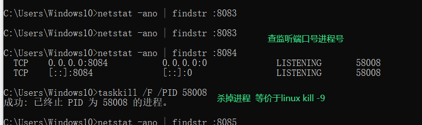 也是让我学了下windows杀进程 解绑端口的方法
