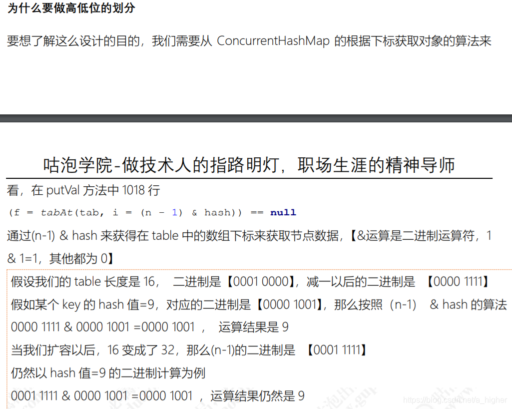 //i = (n - 1) & hash的意思是key的hash 值对应的数组下标得到第一个节点;tabAt()以