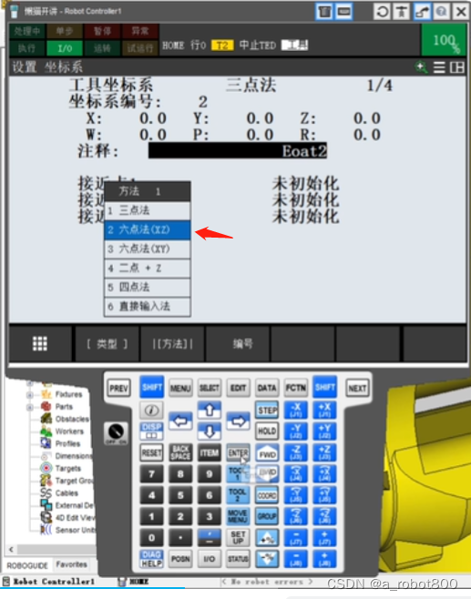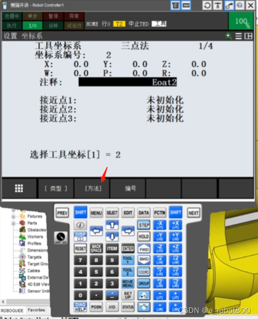 点击下方向键,调整机器人姿态至目标点;按【SHIIFT】+F5【记录】。
