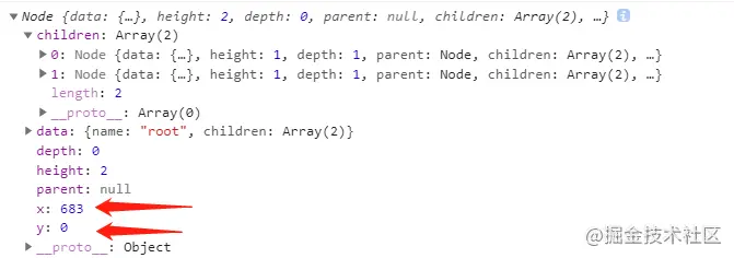 同时也注意layout函数并不是纯函数,由于是引用,原先的hierarchyData数据也变得如上,大家可以在控制台中自行查看