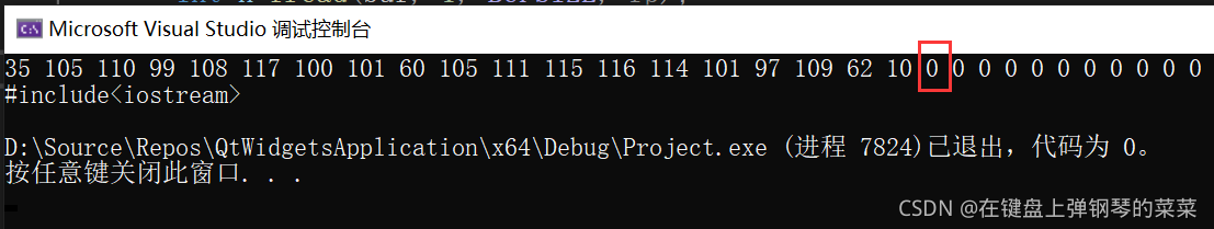 输出读到的内容,从文件中读入这样一句话,果然是没有EOF的。