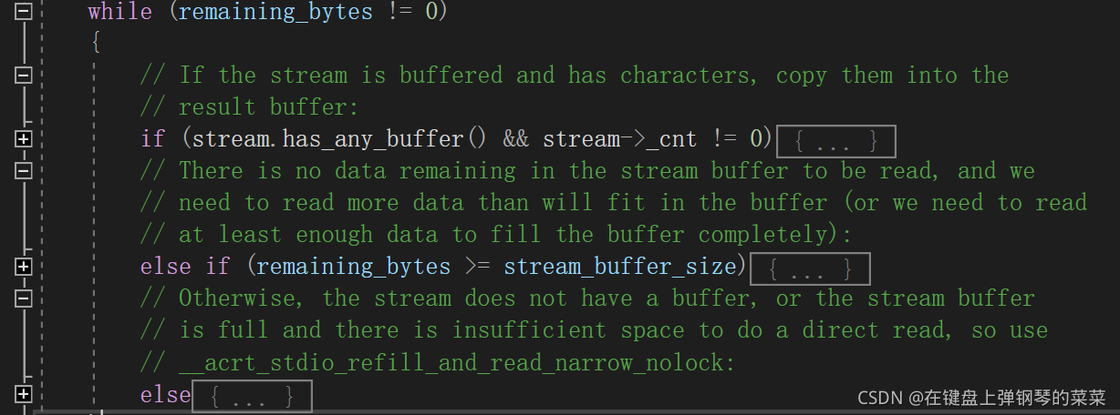 - 如果流没有缓冲区,或者流缓冲区已满,没有足够的空间进行直接读取,所以使用特殊函数进行读取