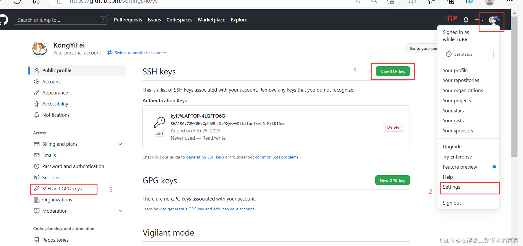 确保client是client:不想每次都输入密码,则将客户端(我们)的ssh public key存储到服务器上,如Github。在每次建立SSH连接时,client会将公钥发送给server,server验证是否和存储值相同。