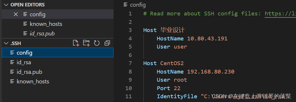 .ssh文件夹在特定用户的用户文件夹下,其中id_rsa是私钥,id_rsa.pub是公钥。在ssh协议中,只要对方有己方公钥,即可完成加密解密。