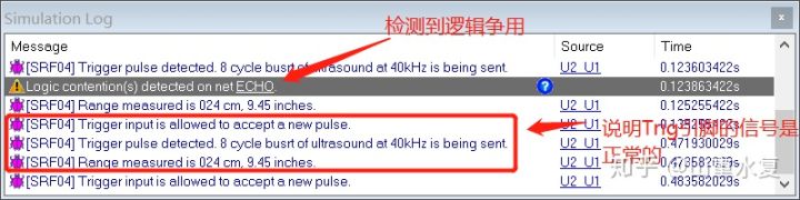 Message窗口提示Echo引脚发生了逻辑争用,之后我就一直等不到高电平信号了,解决办法就是在初始化时不要管这个Echo,可能只有Proteus仿真需要这样,如果是真实的超声波模块,应该不会有这种问题,最后的main如下: