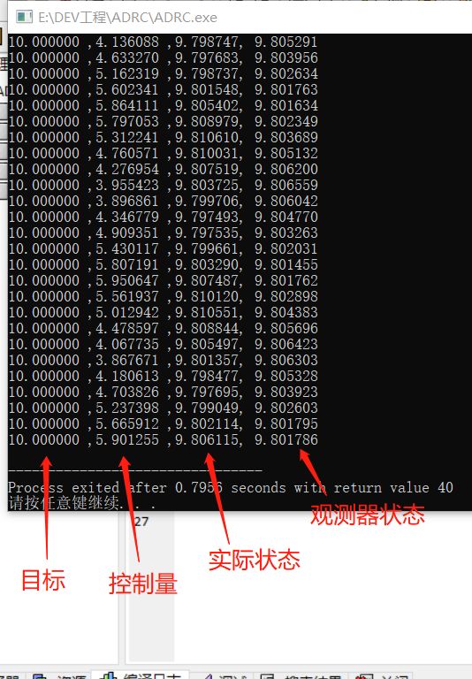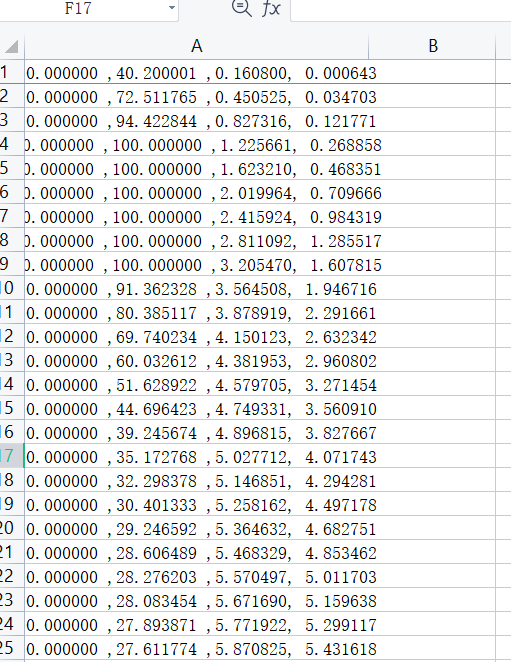 我打印的时候只打印了四个:目标,控制量,实际状态,观测器ESO的输出状态,这里需要用逗号分割开,不进行分割的话,后续不好在excel中查看。之后我们可以将数据复制过来,新建一个excel表格,然后复制:
