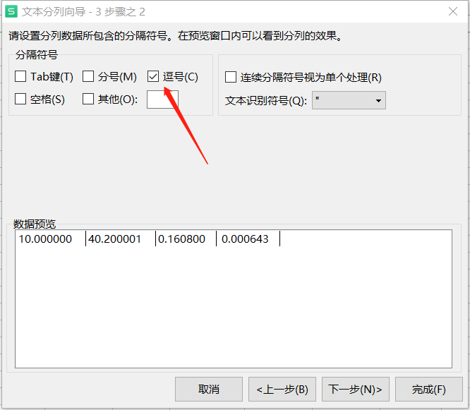 选择“逗号”: