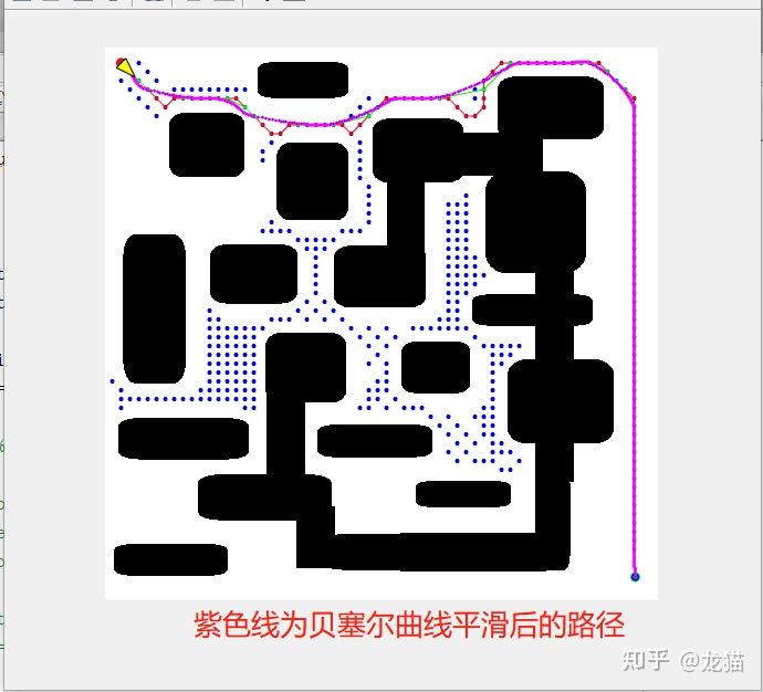 在优化了路径后,我们可以进一步使用贝塞尔曲线规划出一条更平滑的曲线: