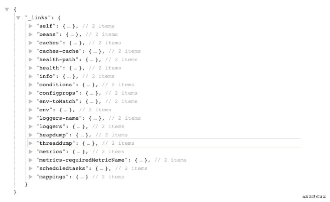 http://localhost:8080/actuator 就可以看到目前可访问的端口列表信息了: