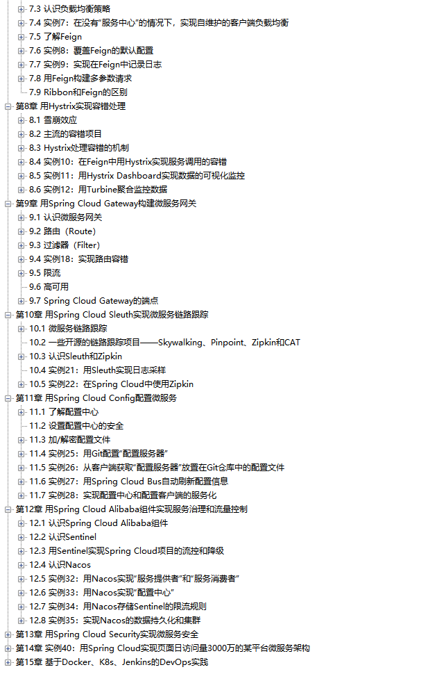 技术全面:讲解了可以通过 Docke 容器实现无侵入的服务治理组件 Consu、Sping Cloud 官网推出的第二代网关框架 Sping Cloud、Gateway、Alibaba 的组件 Nacos Sentinel 、微服务安全框架、Spring Cloud Security 用于 DevOps 实践的 Docker、 kubernetes(K8s)和 Jenkins
