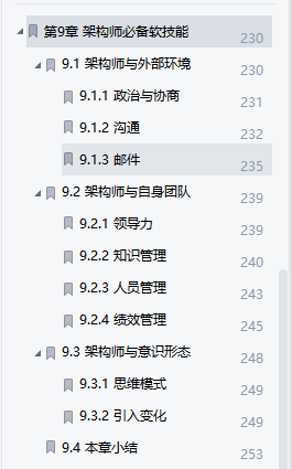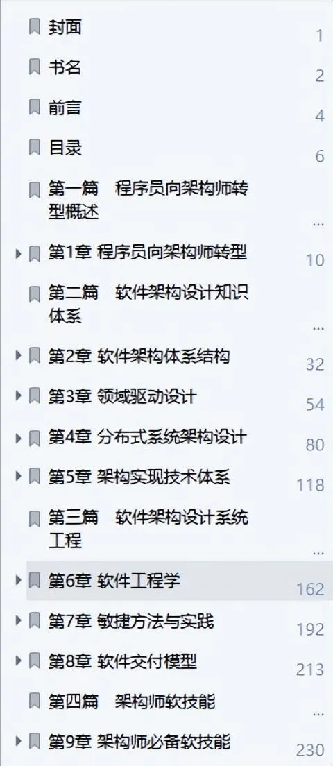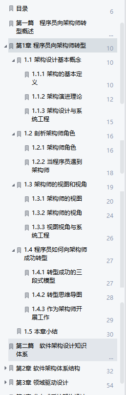 本书共分为4大部分9章节:程序员向架构师转型-软件架构体系结构-领域驱动设计-分布式系统架构设计-架构实现技术体系-软件工程学-敏捷方法与实践-软件交付模型-架构师必备软技能