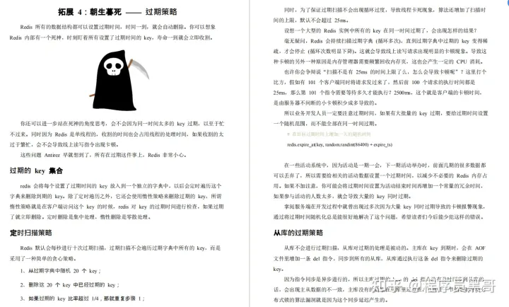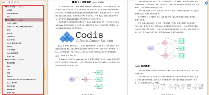 所谓「授人以鱼不如授人以渔」,在这里小编要给大家分享一份圈内最全的看到就是赚到的Redis笔记,目的就是为了帮助后端开发者较为深入的 理解 Redis 背后的原理和实践经验,做到知其然也知其所以然,为未来进阶成长为架构师做好准备。话不多说下面是目录和部分内容截图。