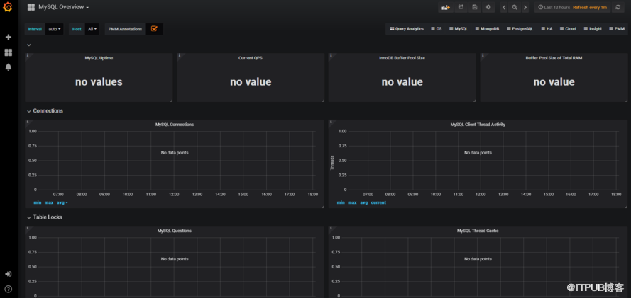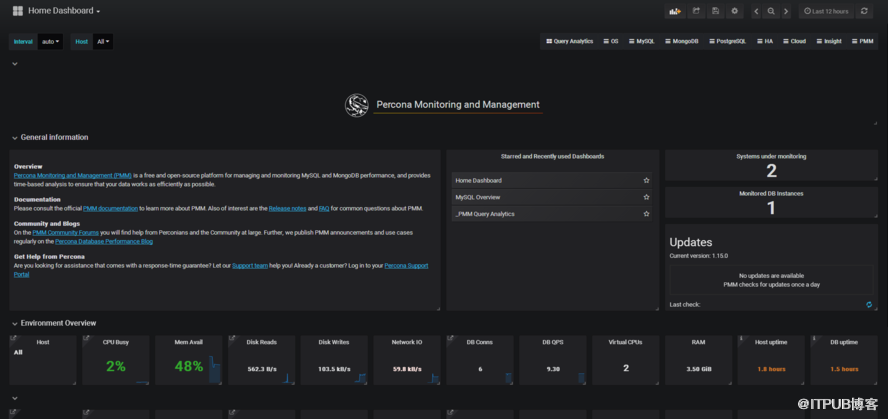 Percona Monitoring and Management 也就是percona公司的数据库监控和管理的开源工具。 Percona Monitoring and Management (PMM) is a free and open-source platform for managing and monitoring MySQL® and MongoDB® performance. You can run PMM in your own environment for maximum security and reliability. It provides thorough time-based analysis for MySQL, MariaDB® and MongoDB servers to ensure that your data works as efficiently as possible. 今天介绍pmm监控MySQL服务器 一、首先安装pmm server 我们这边使用docker安装pmm server 方便快捷 使用Docker运行PMM服务器 PMM服务器的Docker映像位于percona / pmm-server公共存储库中。如果您打算从Docker镜像运行PMM Server,则主机必须能够运行Docker 1.12.6或更高版本,并具有网络访问权限。 注意:确保主机的防火墙和路由规则不限制Docker容器