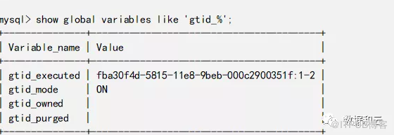 l gtid_owned是一个只读变量,其内容取决于它的范围。 当与session会话级一起使用时,该列表包含此客户端拥有的所有GTID; 当与global 级一起使用时,它包含所有GTID及其所有者的列表。