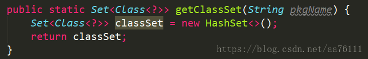 private static void addClass (Set<Class<?>> classSet, String className) { System.out.println(className); // 直接打印看看结果 }