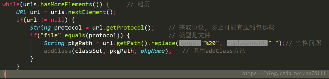 String pkgPath = url.getPath().replace("%20", " ");// 空格问题