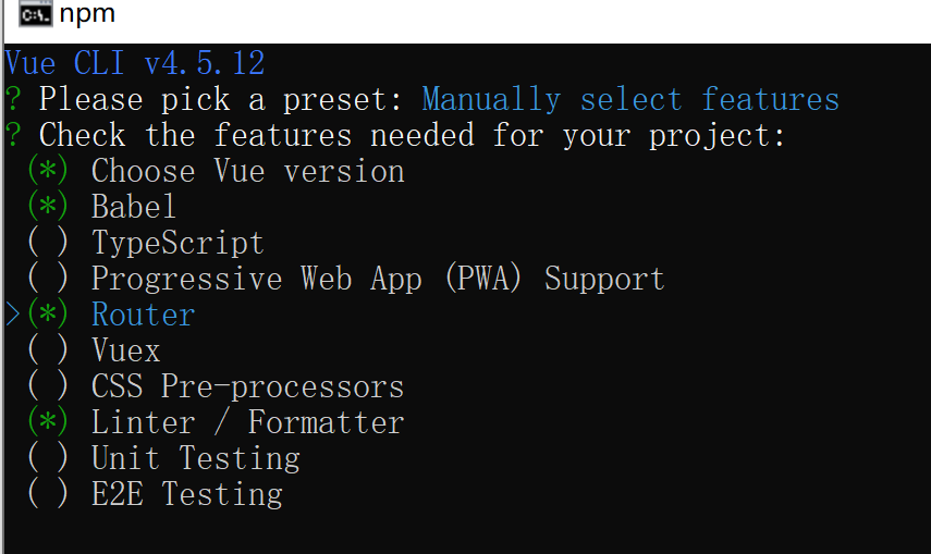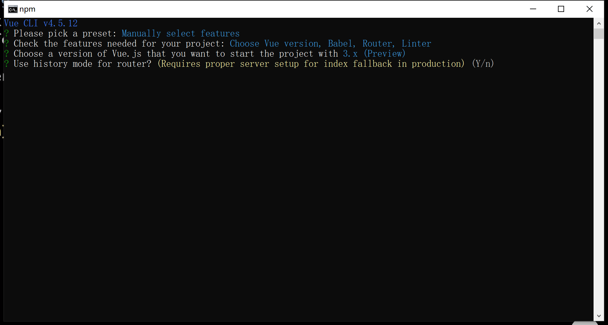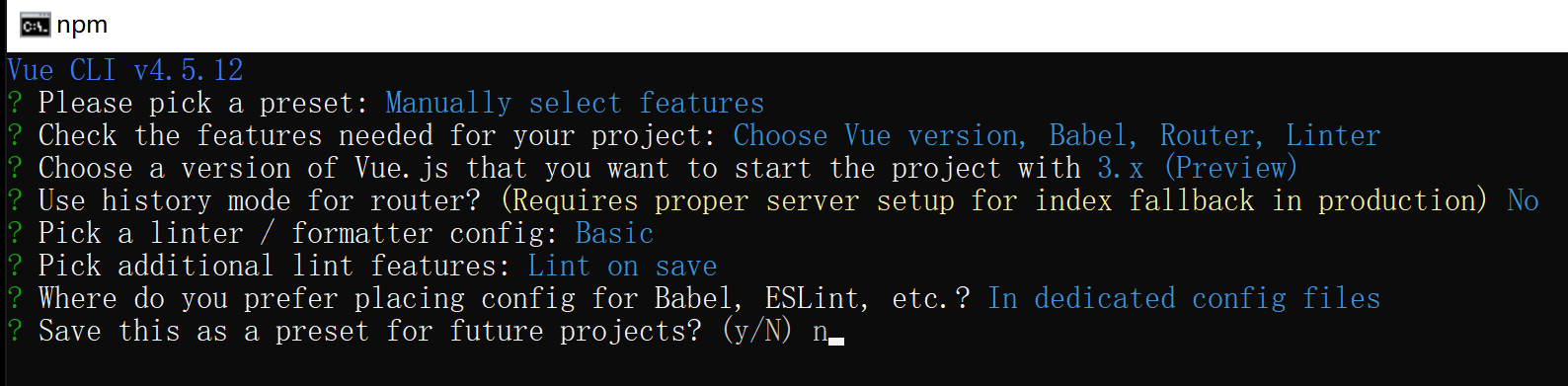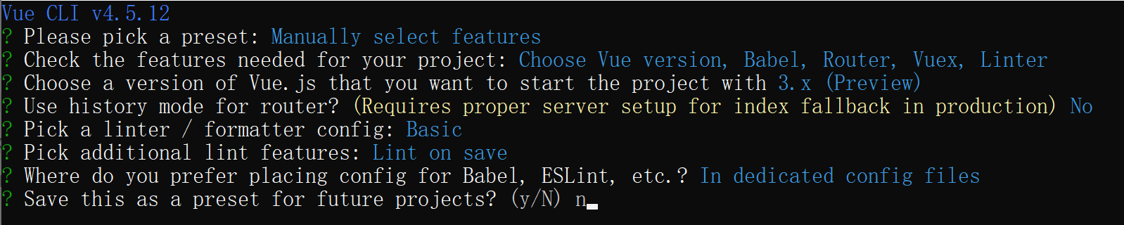 选择3.x的Vue版本,回车,选择使用ESLint的方式: