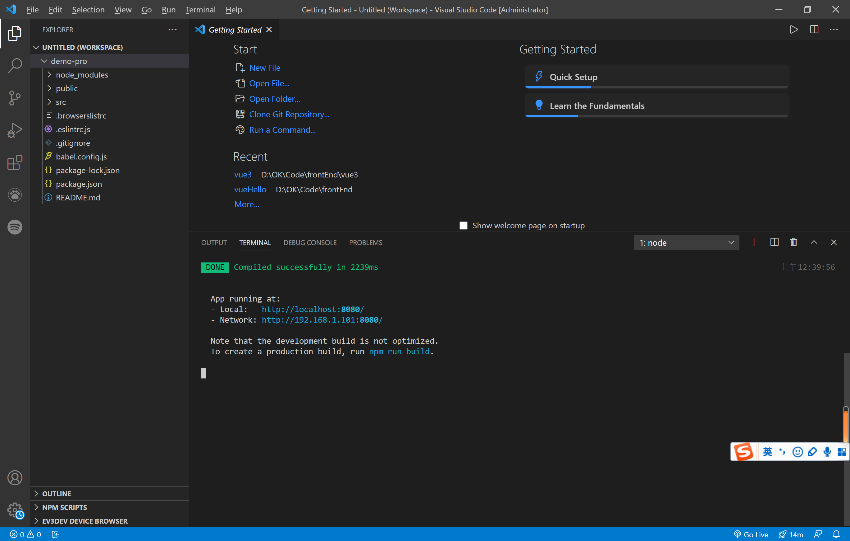 - 退出之后,把刚刚创建的项目拉进VSCode,使用VSCode启动项目