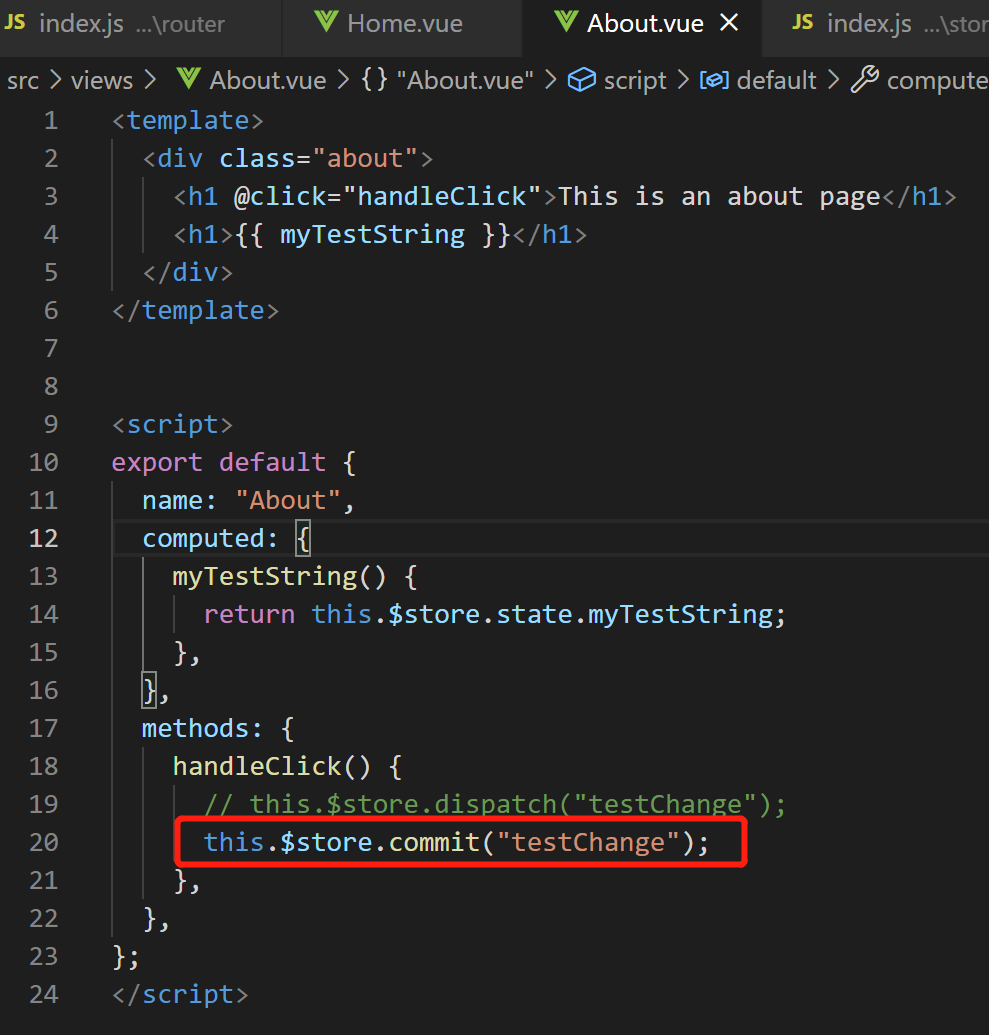 - 在Home.vue中 使用这个 VueX提供的 全局数据字段: