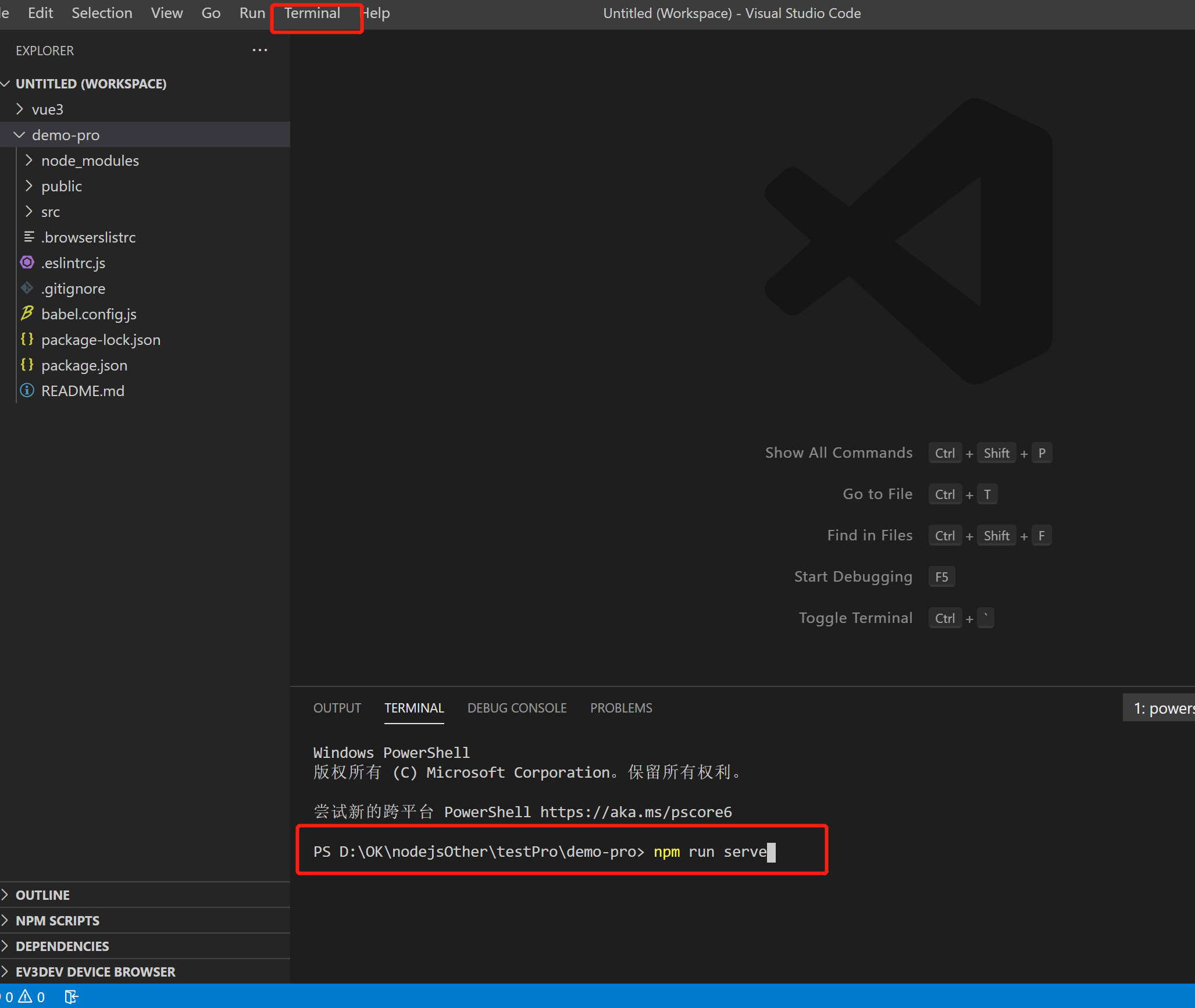 在VS Code中,使用Terminal栏启动即可,方便快捷!