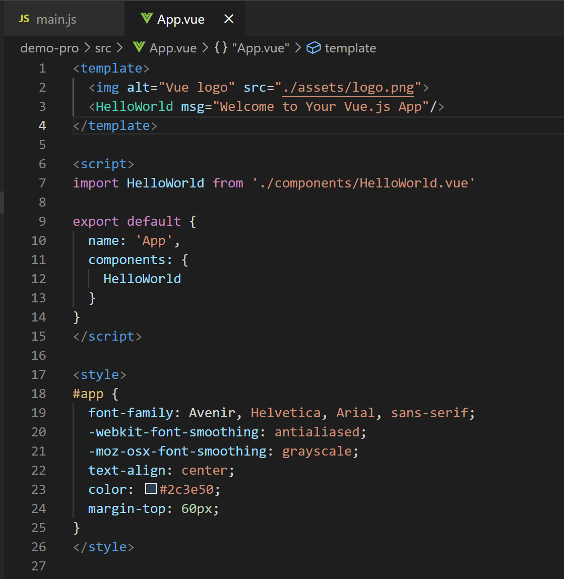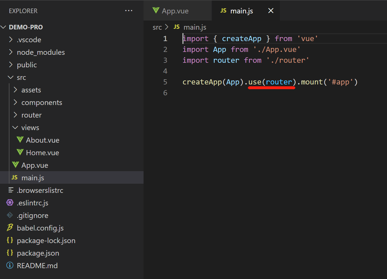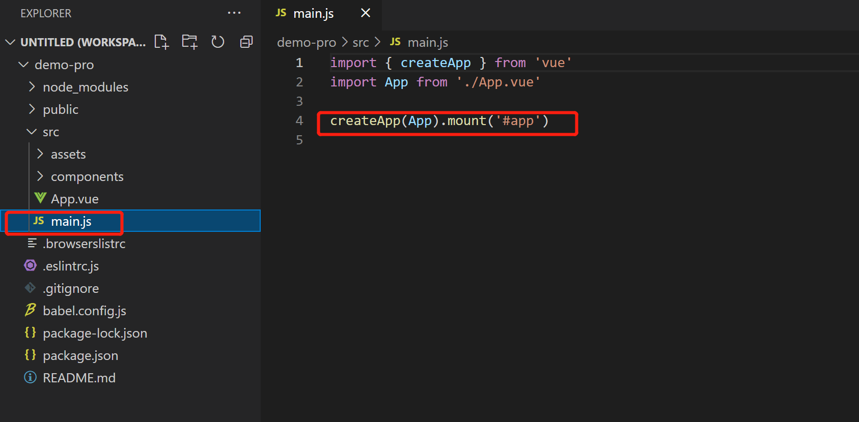 指明App实例,来自于当前文件夹下的 App.vue文件;