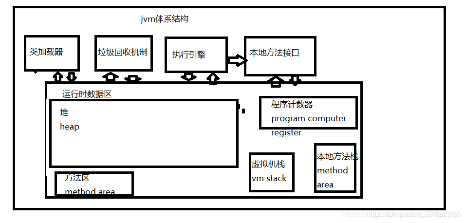 执行引擎: 执行java编译好的字节码,或者执行本地方法