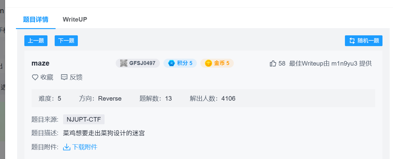使用了攻防世界 re部分的maze,不推荐直接用这个做pwn,简单的比较累(不如手动),难的还要调教ai。