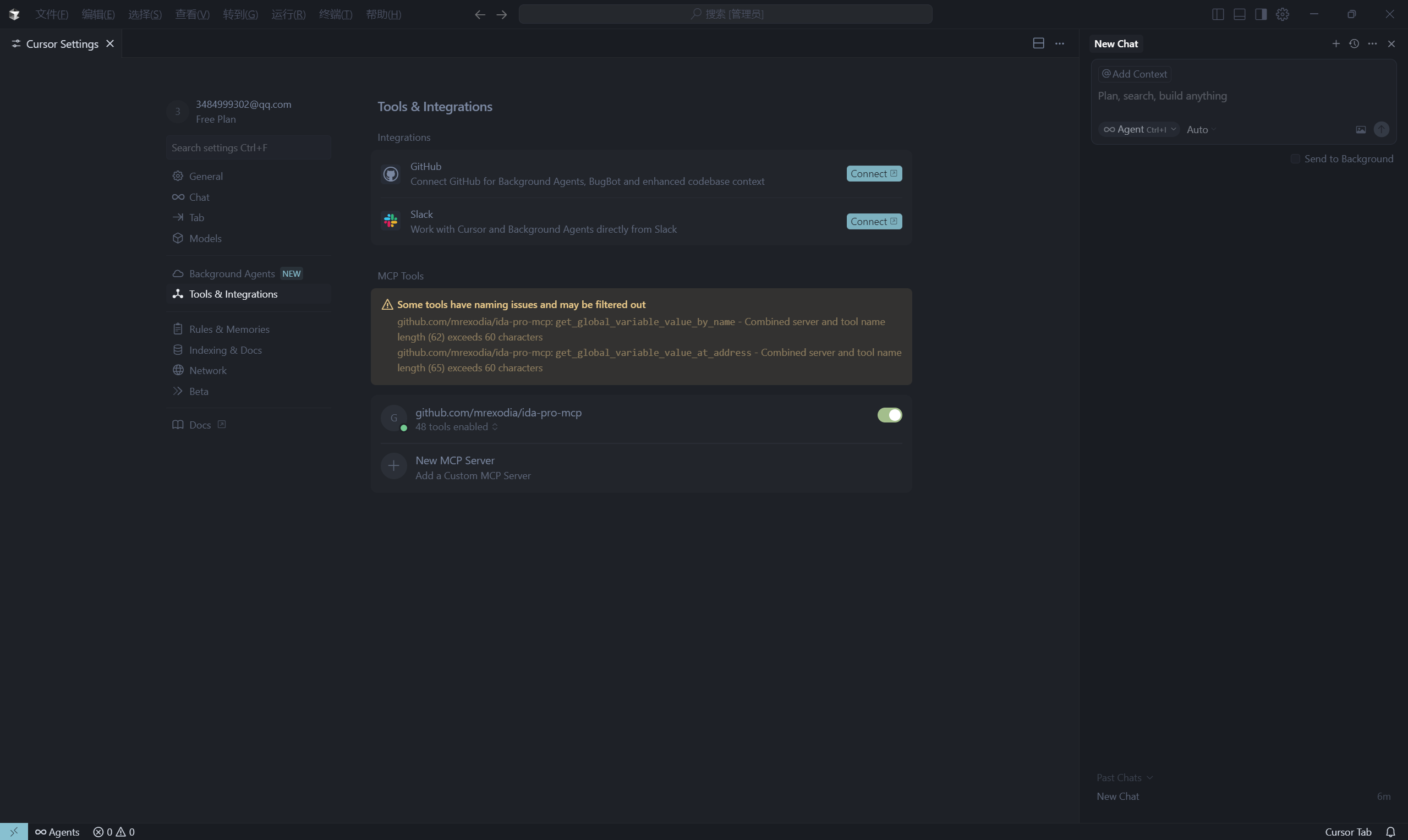 之后就可以设置cursor,从右上角设置进入tools选项页,手动add一个New MCP Server,