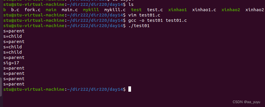 子进程结束,父进程会收到内核发送的SIGCHLD信号(17);