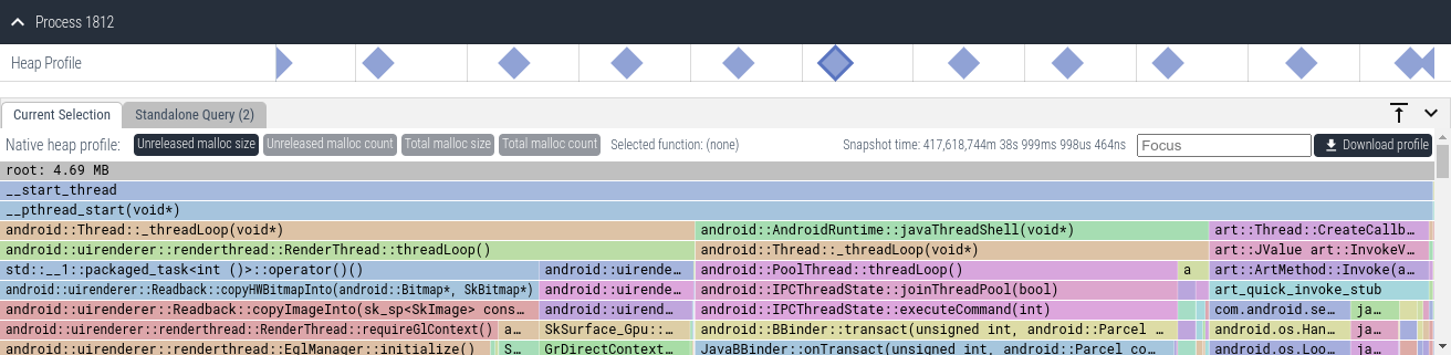 - Heapprofd 是一个跟踪给定时间段内 Android 进程的堆分配和释放的工具。
