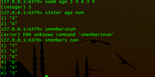 sinterstore ( result) (key1) (key2) //求几个集合的交集同时将结果放到result集合中