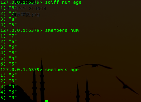 (11) sdiff (key1) (key2) //求集合key1和key2的差集