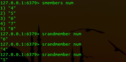(5) srandmember (key) //随机获取集合中的元素